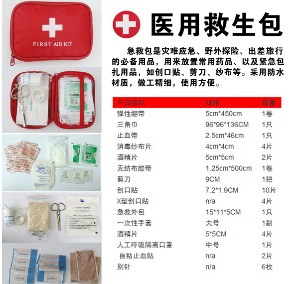 安心地震應急包里還內(nèi)含醫(yī)療應急包,