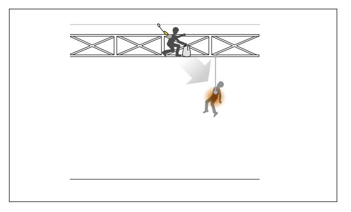 向下疏散時,可以使用一個下降器操作。這是最簡單的方法。如不可能向下疏散,可將被困者向上或水平疏散。向上時,救援人員可使用平衡或提拉技術。水平運送時,需要設置一條或多條安全繩索。其中一條安全繩索用于運輸,另一條用作備用保護,最后一條用于移動擔架。