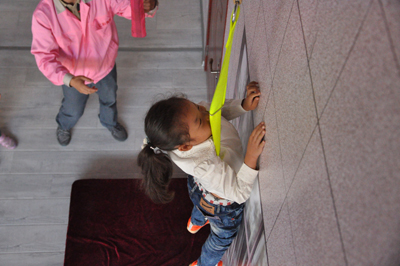 走進(jìn)培訓(xùn)中心,豐富的體驗(yàn)點(diǎn)讓學(xué)生們歡呼雀躍,3D技術(shù)短片《災(zāi)難警示錄》播放過(guò)程中,地震來(lái)臨,成群老鼠亂竄,觀看的孩子情不自禁抬起雙腳遠(yuǎn)離地面;消防標(biāo)志識(shí)別系統(tǒng)、火災(zāi)隱患識(shí)別查找系統(tǒng)等寓學(xué)于樂(lè)小游戲,孩子們?cè)诎职謰寢尩膸椭逻厡W(xué)邊玩,邊相互比賽,不亦樂(lè)乎;滅火器激發(fā)孩子動(dòng)手欲望,孩子們眼睛緊緊盯著滅火器,不等解說(shuō)員講解完就迫不及待的體驗(yàn);在高層樓宇緩降器體驗(yàn)區(qū),劉宸鑠在爸爸的鼓勵(lì)下體驗(yàn)高層緩降,成功著地后,劉宸鑠歡呼的拽著爸爸一起高層緩降,體驗(yàn)完高層緩降之后,劉宸鑠爸爸告訴講解員:“剛開(kāi)始心里有點(diǎn)擔(dān)心,現(xiàn)在孩子和我都體驗(yàn)完之后,感覺(jué)很安全,孩子不但學(xué)會(huì)了高層緩降,發(fā)生火災(zāi)時(shí)能保護(hù)自己,而且鍛煉了孩子的勇氣”;119火災(zāi)報(bào)警系統(tǒng)區(qū)域,張笑芊一秒鐘也等不及的想要體驗(yàn),索性和旁邊同學(xué)共用一個(gè)電話體驗(yàn),兩人異口同聲的回答,引來(lái)家長(zhǎng)陣陣笑聲。