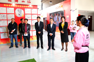 海麗雅集團董事長張旭明陪同青島市安監(jiān)局局長李興偉、市北區(qū)政府副區(qū)長高波參觀應(yīng)急安全教育培訓(xùn)中心