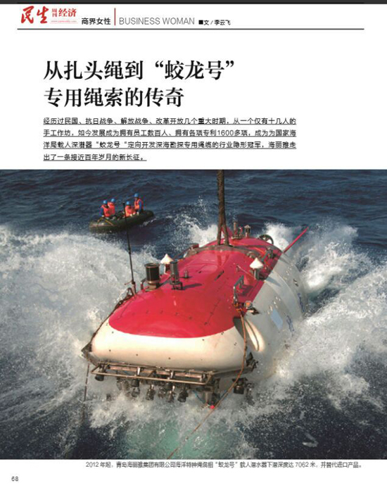 青島海麗雅集團94年專注一根繩子,在傳統(tǒng)與創(chuàng)新之間尋求突破,不斷為繩纜注入科技力量。公司完成了從純手工生產扎頭繩到為國家海洋科考船“大洋一號”、載人潛水器“蛟龍?zhí)?rdquo;等尖端領域研發(fā)、配備高科技特種繩纜,再到應急自救產業(yè)的進化,實現(xiàn)了從“中國制造”到“中國質造”。