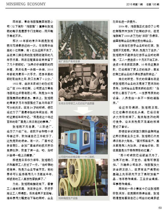 2016年3月,人民日報《民生周刊》增設了“商界女性”專欄。經過中國女企業(yè)家協(xié)會推薦,海麗雅集團董事長張旭明成為該專欄首位中國女企業(yè)家。期刊在全國“兩會”期間向公眾呈現(xiàn)百年企業(yè)的傳奇發(fā)展歷程。