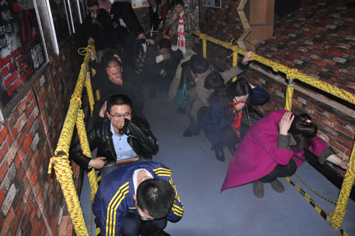 隨后地面搖晃,房梁柱子發(fā)出斷裂聲。所有人相驚失色,試圖跑出屋外。卻發(fā)現(xiàn)頭暈?zāi)垦#玖⒉环(wěn),撲坐在地上,隨著地面的顛簸而翻滾,房屋瞬間倒塌。墻倒屋塌之聲和小兒恐懼啼哭、女人哀號(hào)之聲交織一起,像開(kāi)了鍋的沸水一樣喧鬧。是發(fā)生地震了嗎?原來(lái)是女企業(yè)家和企業(yè)安全生產(chǎn)負(fù)責(zé)人正在進(jìn)行“3-6級(jí)”地震體驗(yàn)。