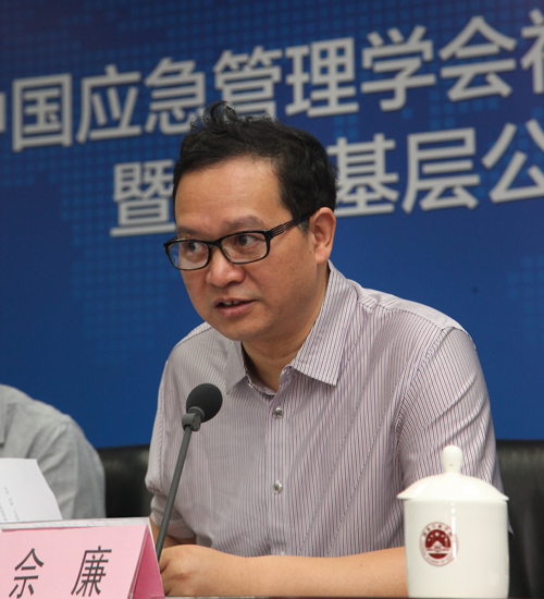 中國應急管理學會社區(qū)安全專業(yè)委員會秘書長余樹華發(fā)表講話。