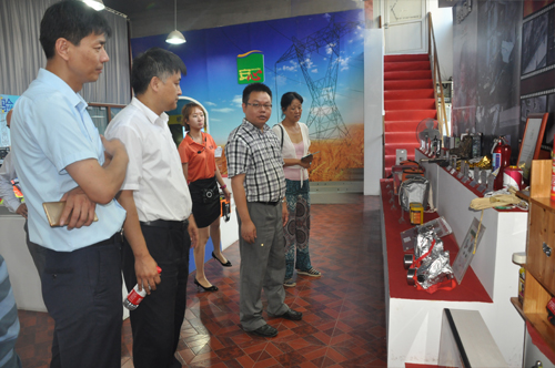那日蘇副社長一行考察公司消防過濾式自救呼吸器等應急產品創(chuàng)新發(fā)展成果