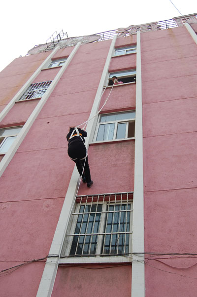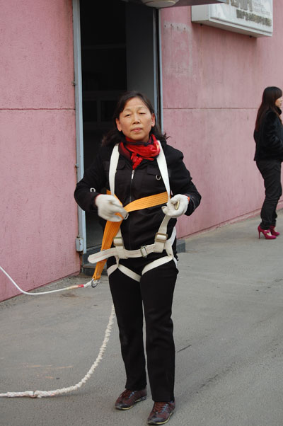 2010年11月19日下午,青島億和海麗高強(qiáng)力安全防護(hù)用品有限公司開(kāi)展了高空火災(zāi)防護(hù)自救互救演習(xí)。57歲的梁子蘭率先從高空使用救生緩降器安全下落到地面,并給大家現(xiàn)場(chǎng)講解使用方法,活動(dòng)吸引了大批市民參與并現(xiàn)場(chǎng)觀摩。