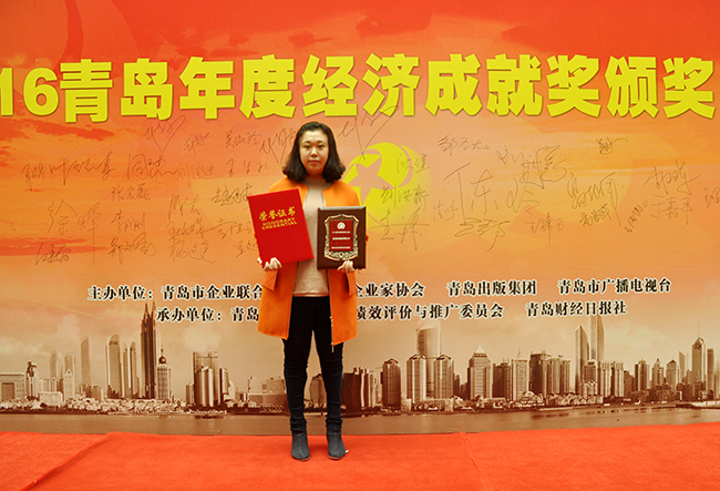 4月8日,由青島企業(yè)聯(lián)合會、青島企業(yè)家協(xié)會、青島出版集團(tuán)、青島電視臺聯(lián)合舉辦的“新變革 新動能 新典范—2016年青島年度經(jīng)濟(jì)成就獎頒獎典禮”在青島電視臺800米演播大廳舉行。經(jīng)過層層評選,青島海麗雅集團(tuán)榮獲“2016青島年度最具創(chuàng)新力企業(yè)”稱號,海麗雅集團(tuán)副總經(jīng)理鄭文嬌代表企業(yè)參會受獎。