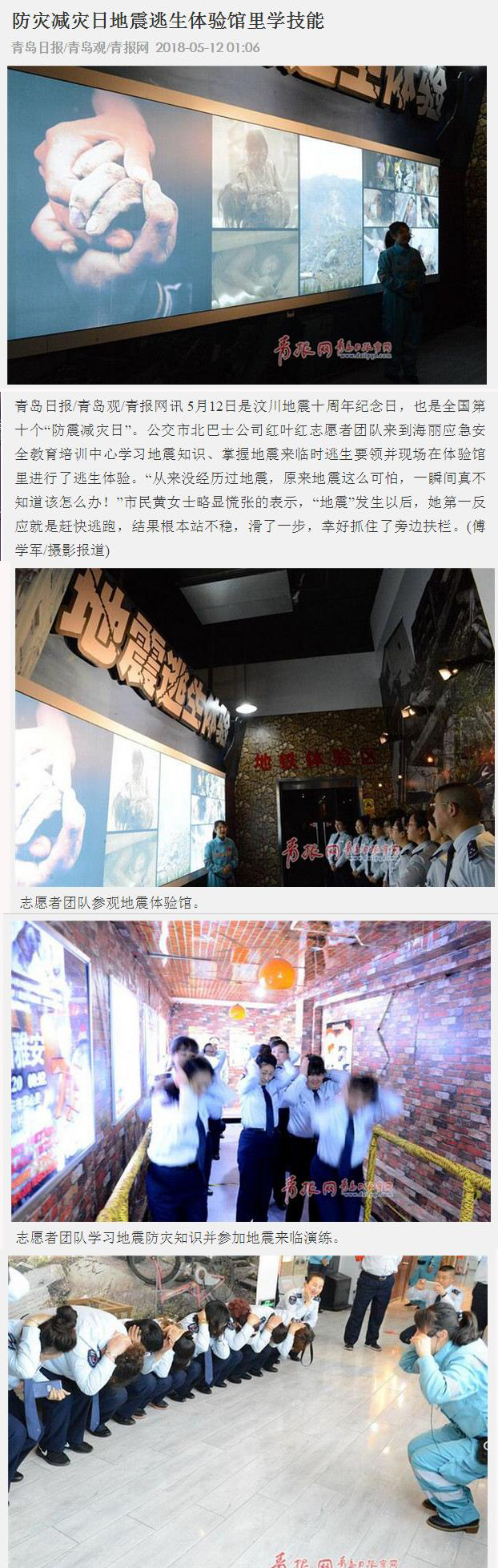 5月12日是汶川地震十周年紀(jì)念日,也是全國(guó)第十個(gè)“防震減災(zāi)日”。公交市北巴士公司紅葉紅志愿者團(tuán)隊(duì)來(lái)到海麗應(yīng)急安全教育培訓(xùn)中心學(xué)習(xí)地震知識(shí)、掌握地震來(lái)臨時(shí)逃生要領(lǐng)并現(xiàn)場(chǎng)在體驗(yàn)館里進(jìn)行了逃生體驗(yàn)。“從來(lái)沒(méi)經(jīng)歷過(guò)地震,原來(lái)地震這么可怕,一瞬間真不知道該怎么辦!”市民黃女士略顯慌張的表示,“地震”發(fā)生以后,她第一反應(yīng)就是趕快逃跑,結(jié)果根本站不穩(wěn),滑了一步,幸好抓住了旁邊扶欄。