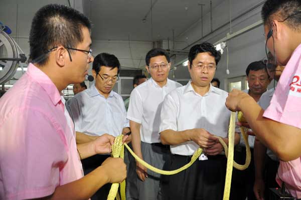 青島市常務(wù)副市長(zhǎng)?椗阃瑖(guó)家工信部領(lǐng)導(dǎo)蒞臨海麗工業(yè)園考察特種繩纜研發(fā)生產(chǎn)情況