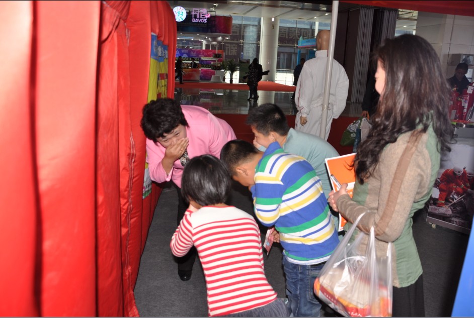 展會(huì)上,海麗集團(tuán)的子公司-青島億和海麗安防科技有限公司不僅展示了最先進(jìn)、實(shí)用的應(yīng)急自救產(chǎn)品,還設(shè)立了煙霧逃生帳篷、高層樓宇救生緩降器等應(yīng)急自救體驗(yàn)區(qū)供市民免費(fèi)體驗(yàn),讓大家通過切身體驗(yàn)的方式,輕松掌握應(yīng)急消防常識(shí)和自救逃生技能。這種新穎而又充滿刺激的體驗(yàn)方式,引起了不少參觀者的興趣和圍觀。其中不乏勇敢的小朋友,大家都躍躍欲試,紛紛報(bào)名體驗(yàn)。