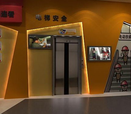 電梯事故體驗(yàn)裝置展示形式: 制作一個(gè)模擬的電梯間,電梯門可以開啟和關(guān)閉。當(dāng)人們進(jìn)入模擬的電梯后,選擇樓層按鈕可以開始模擬運(yùn)行,在開始到運(yùn)行時(shí),突然出現(xiàn)電梯故障,例如:不運(yùn)行、停電開速下降等。為了逼真體驗(yàn),在電梯內(nèi)部安裝有電視機(jī),運(yùn)行時(shí),電視配合場景變化。